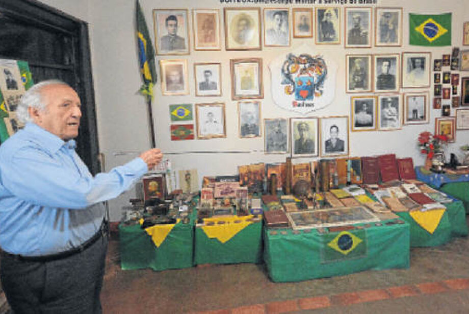 “No total, foram 21 – dez no Exército, nove na Marinha e dois na Guarda Nacional do Império –, cujos retratos estão estampados em quadros, na parede do memorial”, destaca o coronel, que nasceu em Florianópolis e passou a morar novamente em Campo Grande há 4 anos, depois de se casar com Maria das Graças – anteriormente, viúvo, ele morava em Brasília.