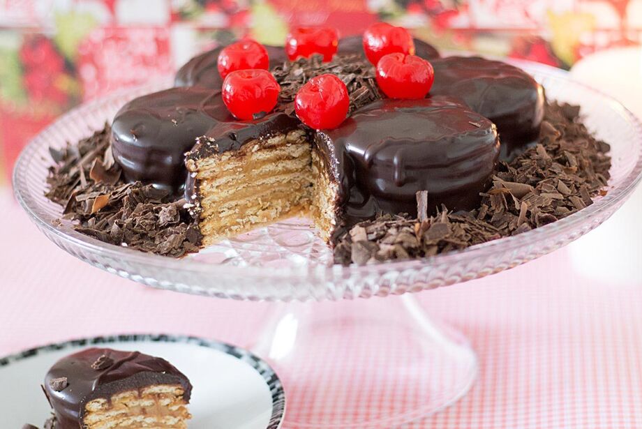 Cubra a TORTA ALFAJOR com o Ganashe.
