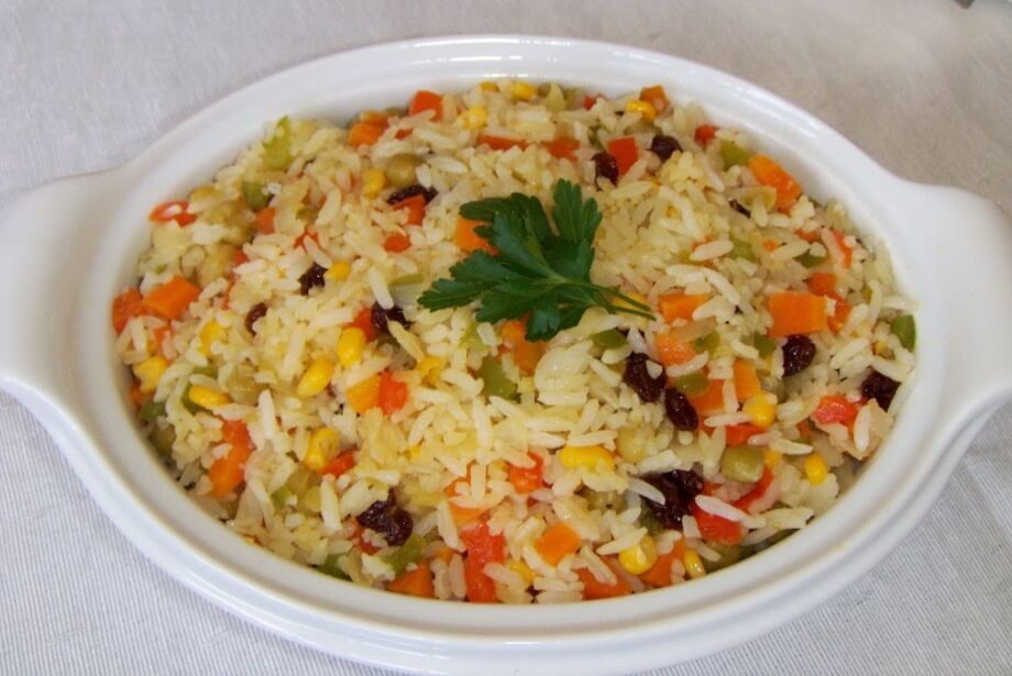 4- Em uma frigideira, refogar por 3 minutos os pimentões cortados em cubos. Acrescentar as ervilhas e refogar por mais 1 minuto. Misturar ao arroz junto com a cenoura ralada.