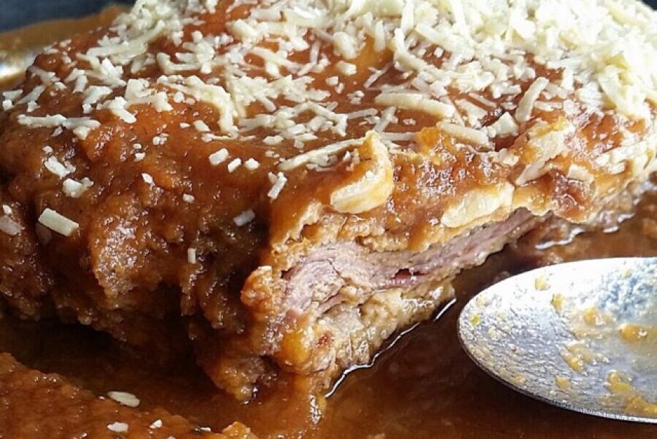 -Disponha os bifes em um refratário e regue-os com o molho de tomate.