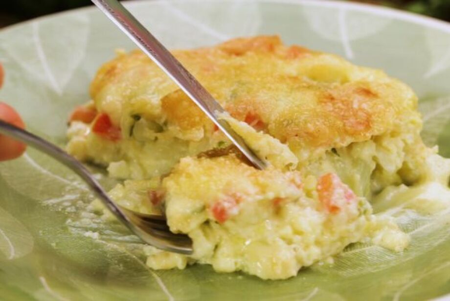 Jogue os ovos batidos por cima da couve-flor.