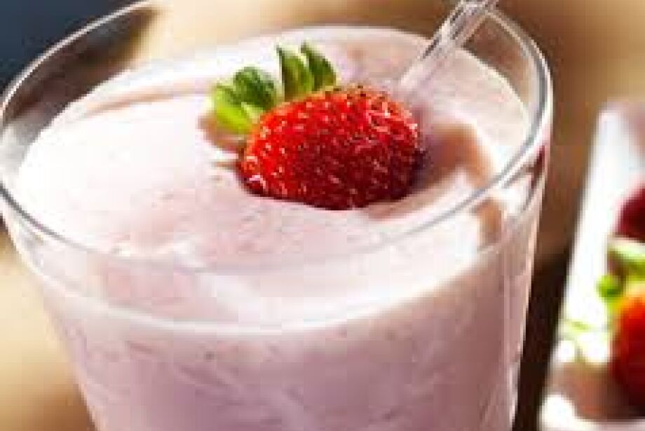 Na hora de servir, decore os copos com um pouco de groselha no fundo e despeje a bebida. Você pode finalizar com pedaços de morango ou chantili.