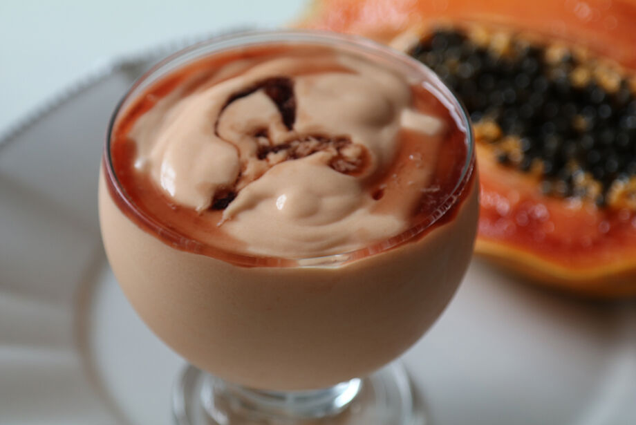 Coloque o creme de papaia em taças e sirva com licor de cassis a gosto.