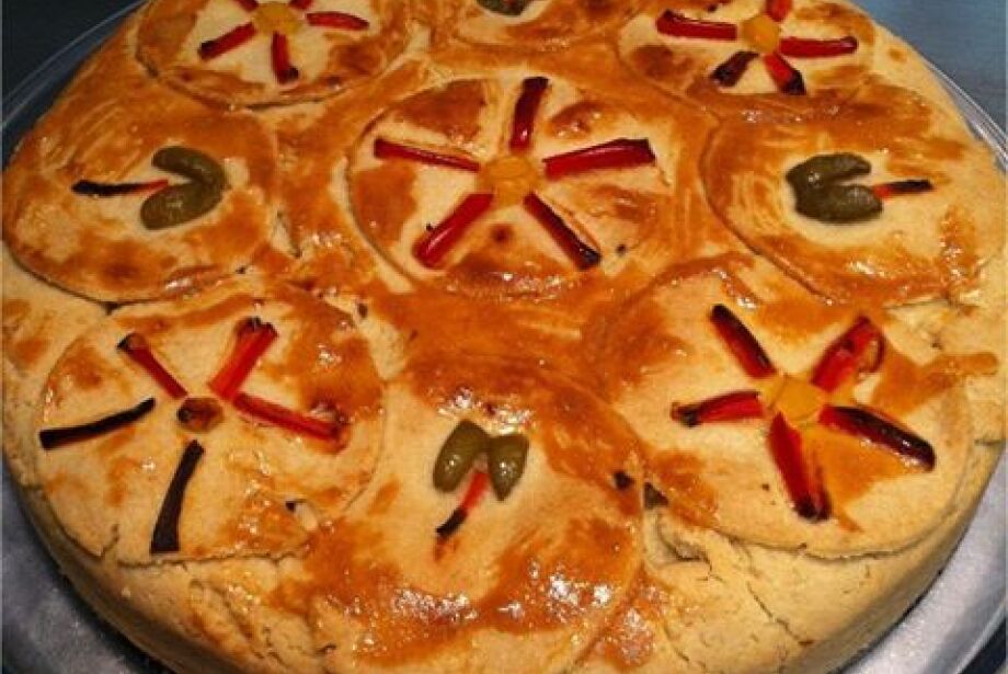 Passe gema de ovo em cima da torta para dar aparência brilhosa quase no fim da espera do tempo estimado