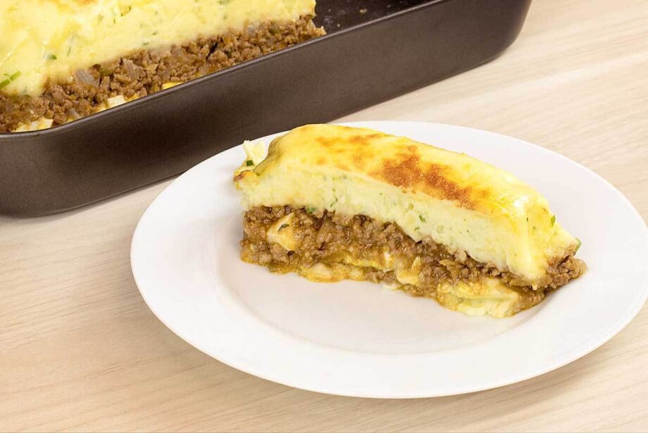 Parece um escondidinho de carne com batata. Se preferir chamar assim, vai fundo.