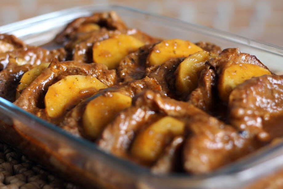 Cubra as fatias de lombo com a panela e sirva a seguir.
