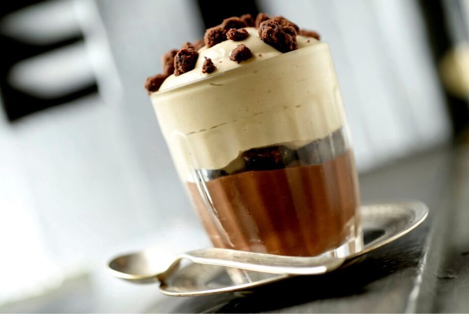 Separe as claras das gemas. Numa panela, misture as gemas, o açúcar e a manteiga. Mexa sem parar durante 6 minutos. Com um termômetro, controle a temperatura não deixando passar dos 70ºC. Caso contrário, ele talha. Após os 6 minutos, com um mixer, bata sem parar até formar um creme homogêneo e reserve. Bata as claras em neve em um batedeira. De volta à panela, adicione o chocolate e mexa até ele derreter. Adicione a clara em neve, aos poucos, e misture tudo. Porcione em seis tigelas e leve à geladeira.