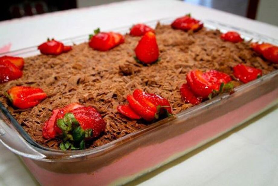 Decore com raspas de chocolate e morango!