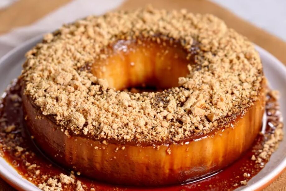Levar a geladeira por no mínimo 3 horas. Desenformar, cobrir com o restante das paçocas esfareladas e servir.