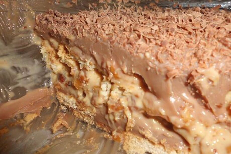 Faça mais uma camada com as bolachas Maria e, por cima, coloque o restante do creme de chocolate