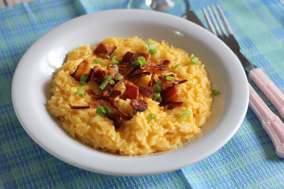 Sirva imediatamente com o crocante de bacon por cima e finalize com a cebolinha picada (pode ser salsinha, coentro, manjericão... é só pra ficar mais bonitinho. Caso não goste, não precisa colocar).