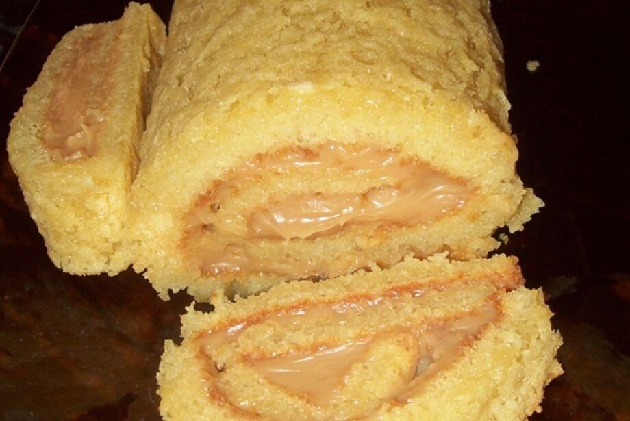 Enrole a massa com o doce de leite, e polvilhe açúcar e canela