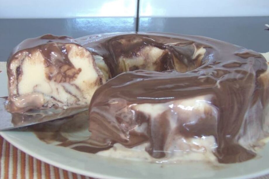 Coloque numa forma de pudim com a calda e leve ao congelador