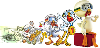 Um dos primeiros grandes trabalhos foi em 1971, ao ser um dos idealizadores do "Frango Lequetreque", o mascote da Sadia. Inicialmente chamado de “Frango Veloz”, foi renomeado após a realização de um concurso cultural em 1985. Ele é conhecido por suas brincadeiras e celebrações, transmitindo uma imagem divertida e amigável, especialmente para o público infantil.