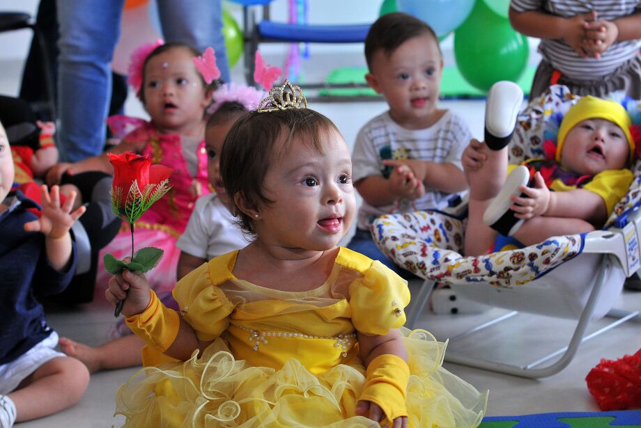 Bebês com síndrome de down vestiram fantasias e pularam o Carnaval pela primeira vez ao lado dos pais