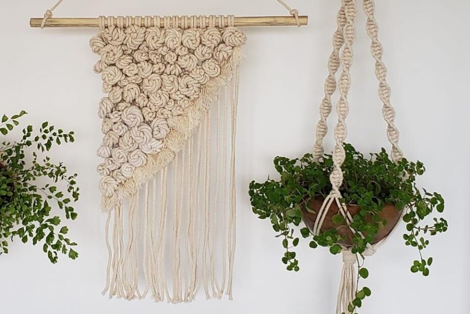 O artesanato feito com nós remonta à história turca do século 13, mas há indícios de ser ainda mais antigo, aparecendo principalmente no Egito e na China. Cada vez mais presente na decoração, o macramê contemporâneo pode aparecer em alguns espaços da casa, como porta-vasos e painéis.