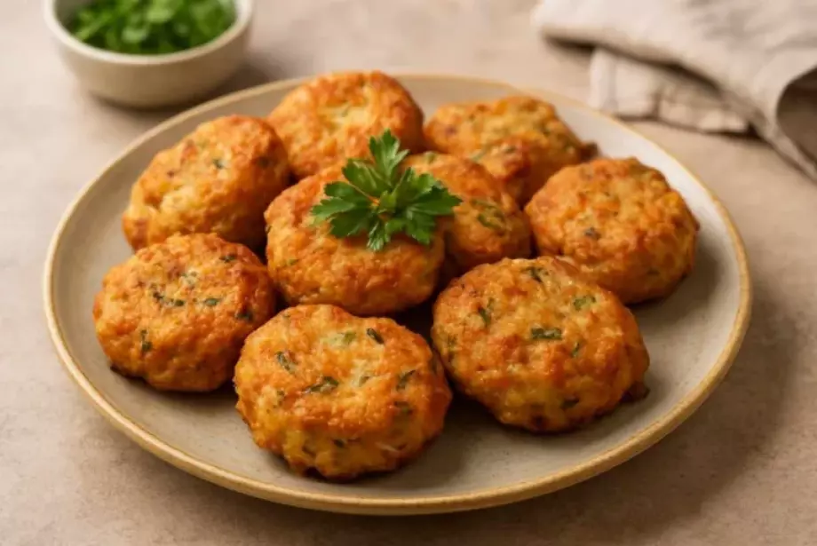 Comece misturando todos os ingredientes em uma tigela até formar uma massa úmida e modelável. Modele em formato de bolinhos ou nuggets e coloque em uma assadeira untada com azeite. Leve ao forno pré-aquecido a 200°C por cerca de 20 a 25 minutos, virando na metade do tempo para dourar dos dois lados. Sirva em seguida.
