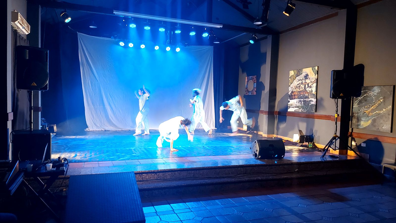 A gente vai aportando artistas iniciantes e já experientes. Vira um espaço de convivência onde o público se encontra e também encontra os artistas. A gente tem espetáculos de capoeira e de danças variadas. Uma diversidade cultural muito rica.