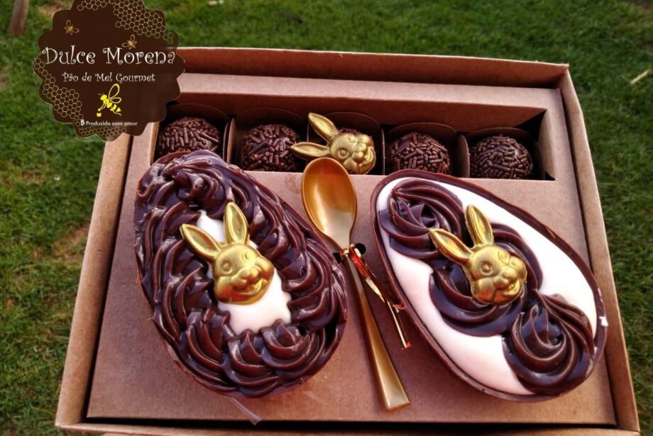 Na lista de ovos de Páscoa há espaço para tudo. Proprietária da Dulce Morena, Jéssica Nayara Silva do Nascimento é arquiteta e urbanista por formação, mas acabou optando por seguir o caminho da gastronomia. “Me apaixonei pelos projetos da confeitaria por conta do meu desejo de ter um empreendimento com meu noivo, Eder. Já faz três anos que fizemos o nosso primeiro teste dos pães de mel, que são o nosso carro-chefe, e foi quando tudo começou”, explica.