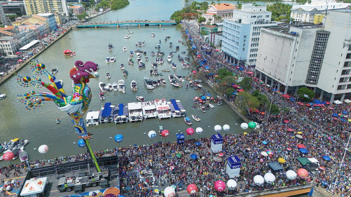 O Galo tem 32 metros de altura e pesa oito toneladas. A cerimônia marcou o início do Carnaval e contou com muito frevo e foliões fantasiados para homenagear um dos principais símbolos carnavalescos.