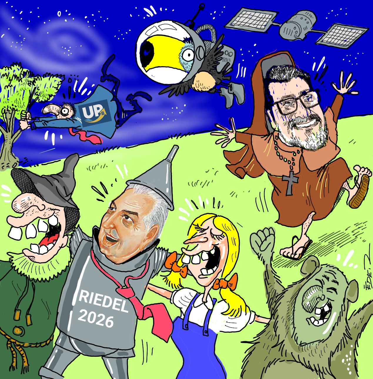 Em gabinete restrito a poucos, a conversa girava sobre políticos que se encaixam perfeitamente em nomes, com algumas adaptações, dos filmes de ontem e de hoje. É o caso do deputado federal Marcos Pollon, que seria “O Noviço Rebelde” (só tem um mandato legislativo e quer, agora, o topo do Executivo); a turma do PSDB formaria o cast de “Uma Odisséia no Espaço” (porque o partido estaria seguindo para esse rumo). “... E o Vento Levou” seria a Federação União Progressistas (que correu o risco de “não ser sem ter sido”). O ex-governador Azambuja estrelaria “O Mágico de Oz” (conseguiu reunir vários partidos para apoiar o projeto de reeleição do governador Riedel). Essa gente!...