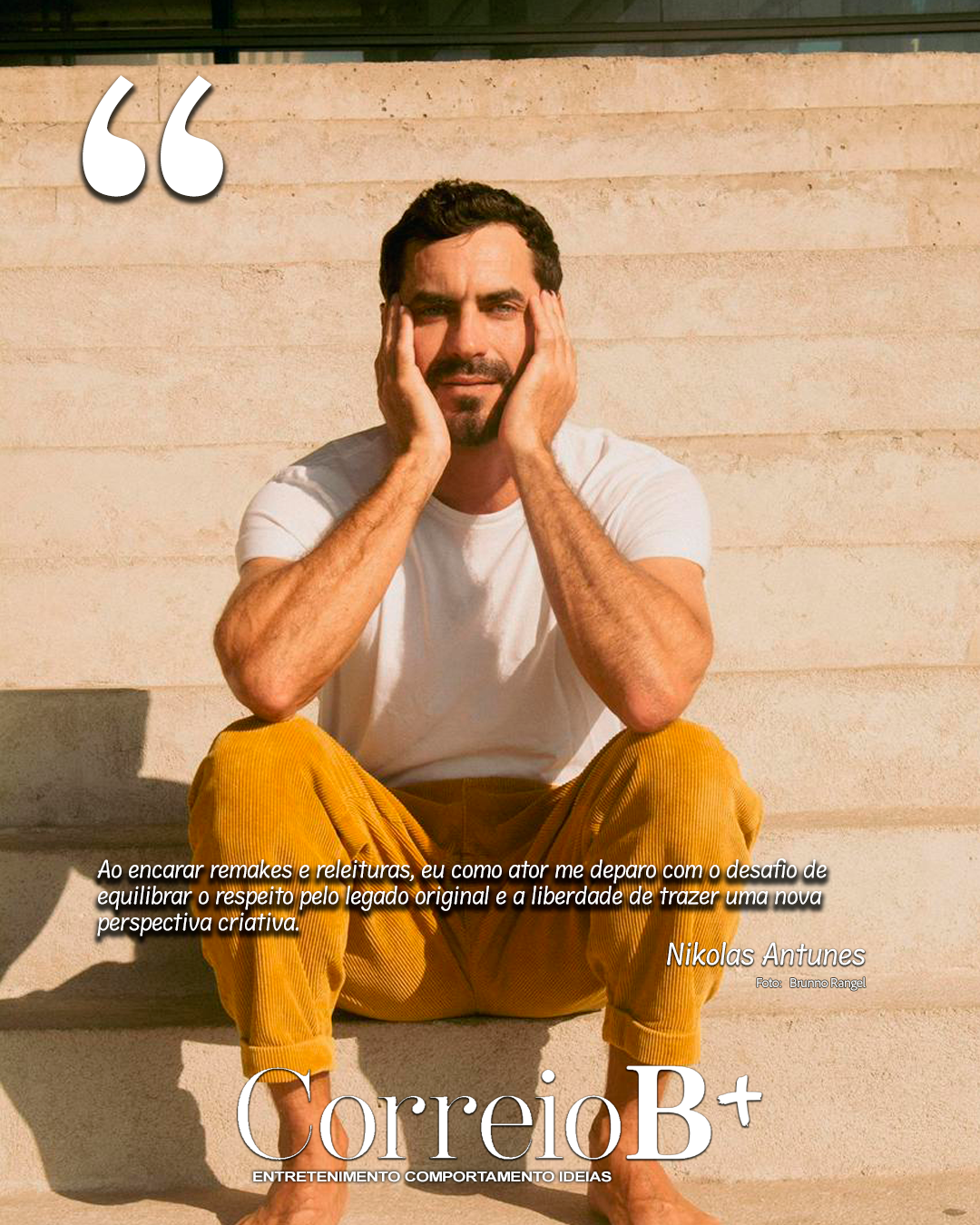 O ator Nikolas Antunes éa Capa exclusiva do Correio B+ desta semana - Foto: Bruno Rangel - Diagramação: Denis Felipe - Por: Flávia VianaCE - Em Estranho Amor, você vive um policial em um contexto urbano e socialmente duro. O que muda no seu corpo e na sua energia quando passa para um personagem rural e de época?