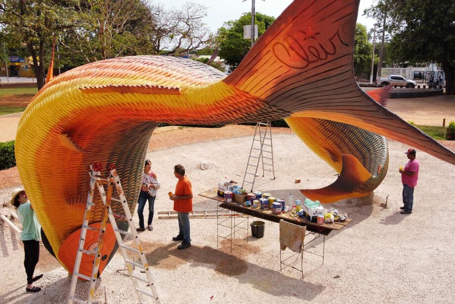 As duas esculturas em argamassa de piraputangas – espécie de peixe abundante nos rios cristalinos da Serra da Bodoquena – saltitando na Praça da Liberdade, um dos cartões-postais de Bonito, estão sendo revitalizadas pelo seu autor, o artista plástico campo-grandense Cleir Ávila, pintor e escultor de grande relevância em Mato Grosso do Sul.