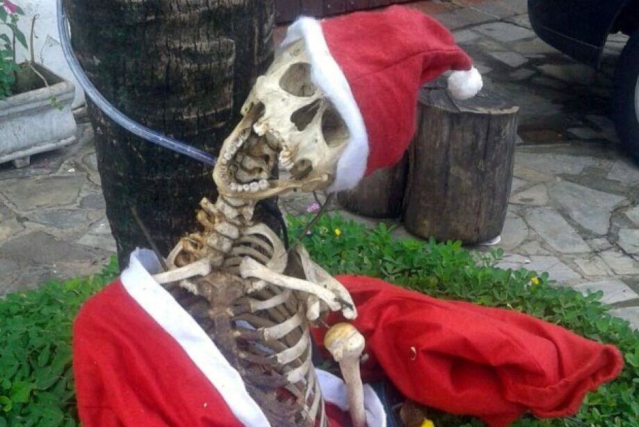 Esqueleto vestido de Papai Noel mobiliza polícia de cidade