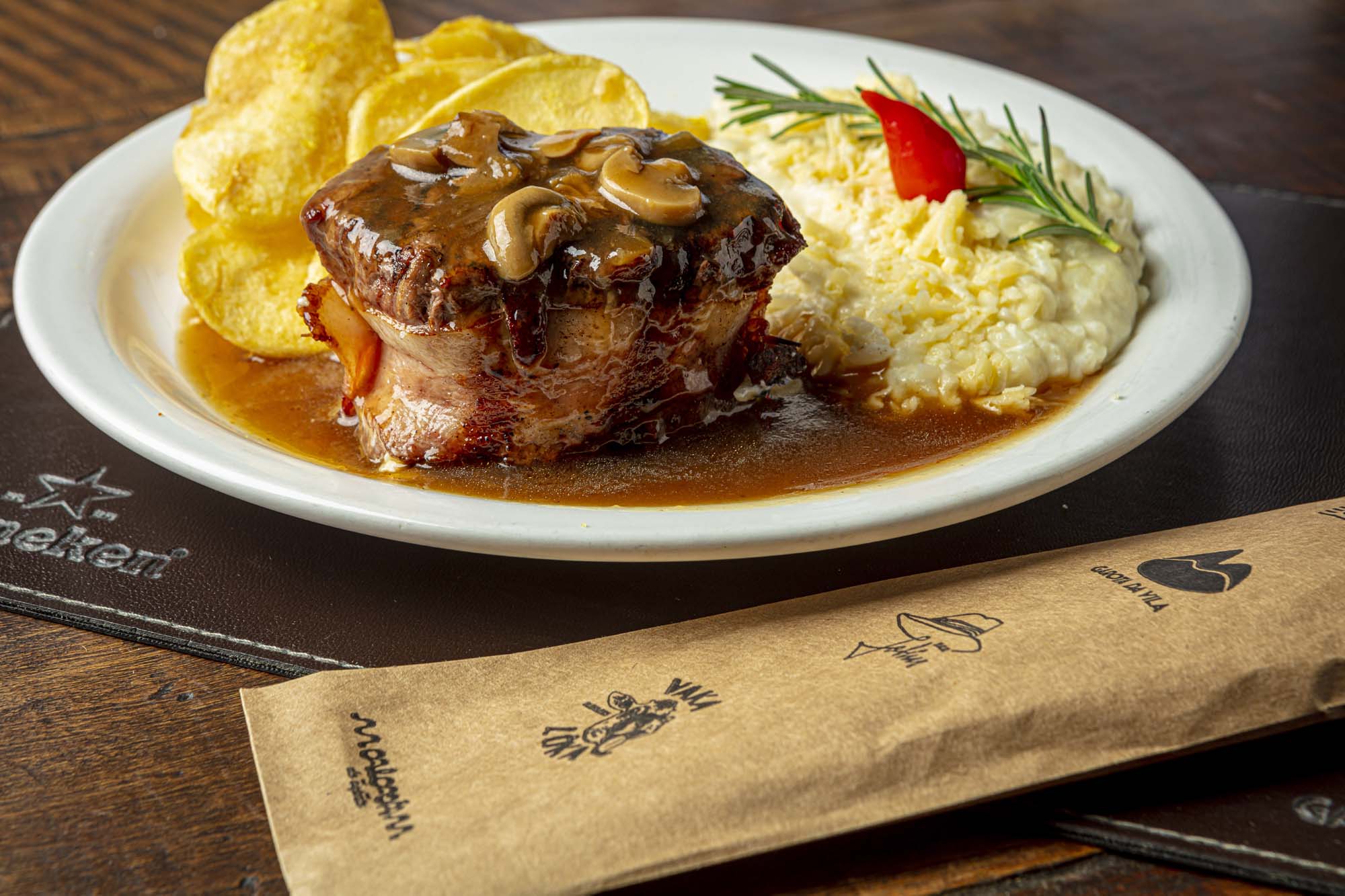 Nas andanças pela cidade, eles encontraram um simpático restaurante caseiro em ma rua de paralelepípedo que ostentava no cardápio da porta um atraente medalhão de filé mignon ao molho madeira, com arroz à piamontèse e batatas portuguesas. Tudo que um bom carioca gosta!