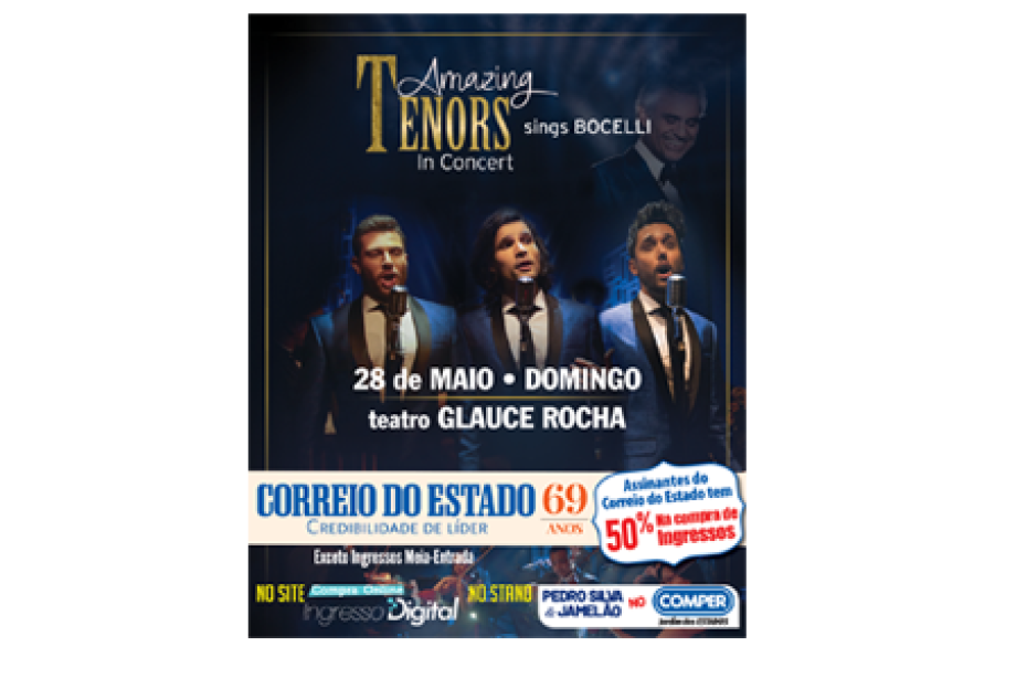 Os tenores Henrique Moretzsohn, Murilo Trajano e Paulo Paolillo chegam a Capital com um espetáculo que tem rodado o País com sucesso. Em “Amazing Tenors in Concert Sings Bocelli”, os três jovens e já renomados cantores interpretam as músicas que marcaram a carreira de Andrea Bocelli, um dos maiores e mais populares tenores da história da música.