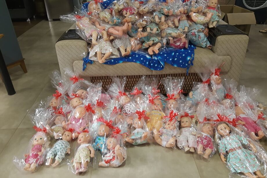As irmãs Lucineia, Madalena e Norma Ossuna montaram uma oficina de bonecas para presentear crianças carentes neste Natal. A ideia veio após a pandemia, quando uma das irmãs, Lucineia, se deparou com dezenas de doações de bonecas, que ficaram paradas durante o período crítico da Covid-19, pois a escola em que é diretora estava fechada.