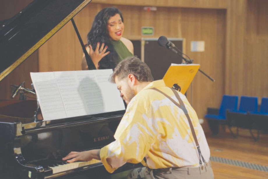 O duo formado pela soprano Jayana Paiva e o pianista Adriano Lopes apresenta o espetáculo gratuito “Uma Doce Canção: Concerto para Canto e Piano”, amanhã, no Sesc Teatro Prosa, localizado na Rua Anhaduí, nº200. Entrada franca, com reserva de ingressos pelo Sympla. Capacidade da sala: 208 lugares.