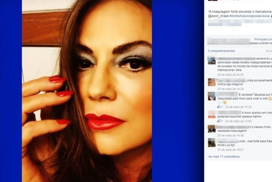 Em sua página no Facebook, a modelo postou em 25 de maio, quatro dias após o incidente, uma foto com parte do rosto coberto pelos cabelos e uma frase: "A maquiagem forte esconde o hematoma da alma". Luiza é embaixadora do Instituto Avon, que faz campanha contra a violência doméstica.