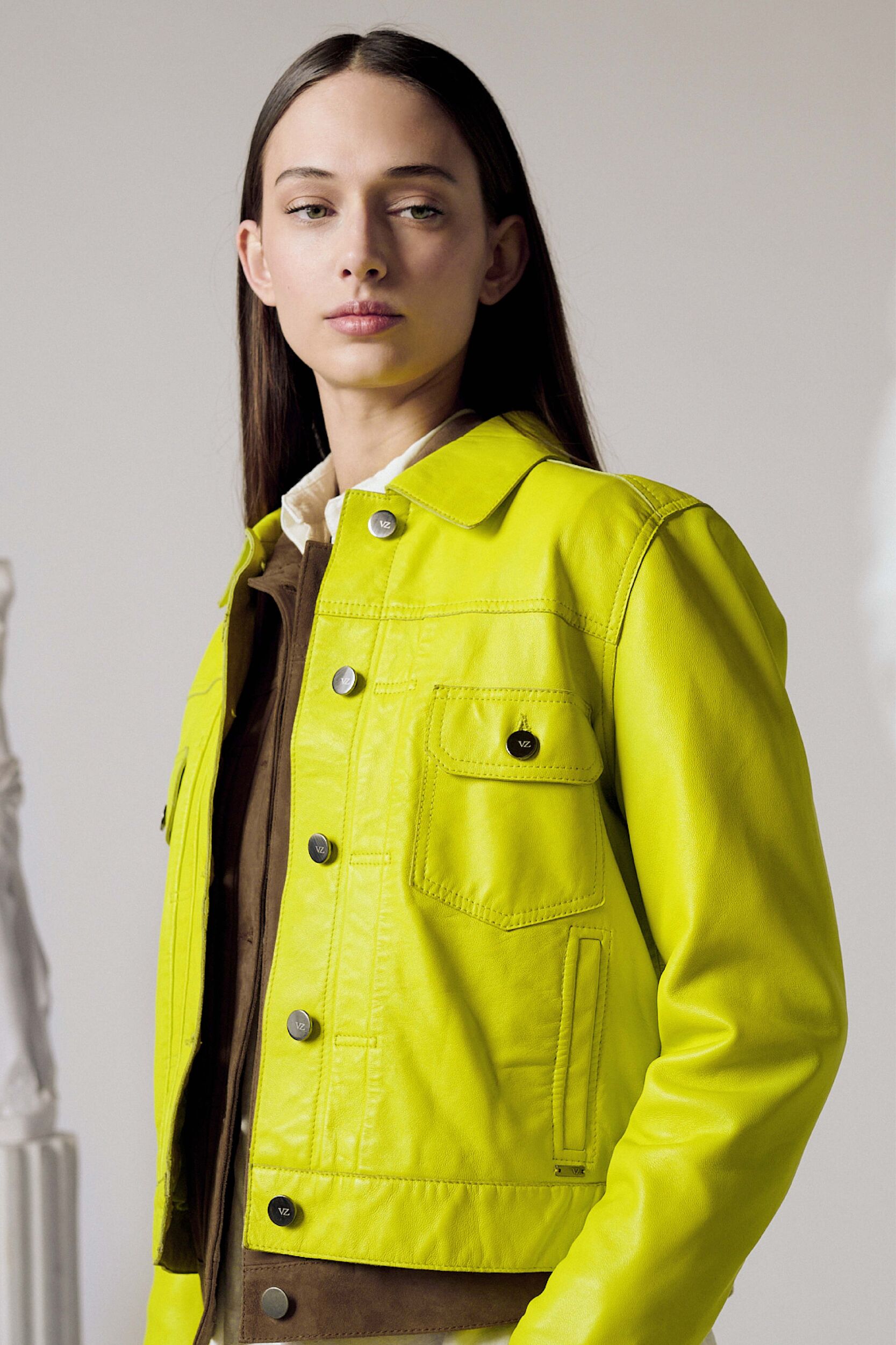 Uma opção para quem busca acrescentar o tom em seu guarda-roupa, é compor um look fresco e descontraído, com a junção de uma blusa sem mangas em Cyber Lime, combinada com calças de linho brancas e tênis casuais, oferecendo um visual vibrante para uma tarde casual.