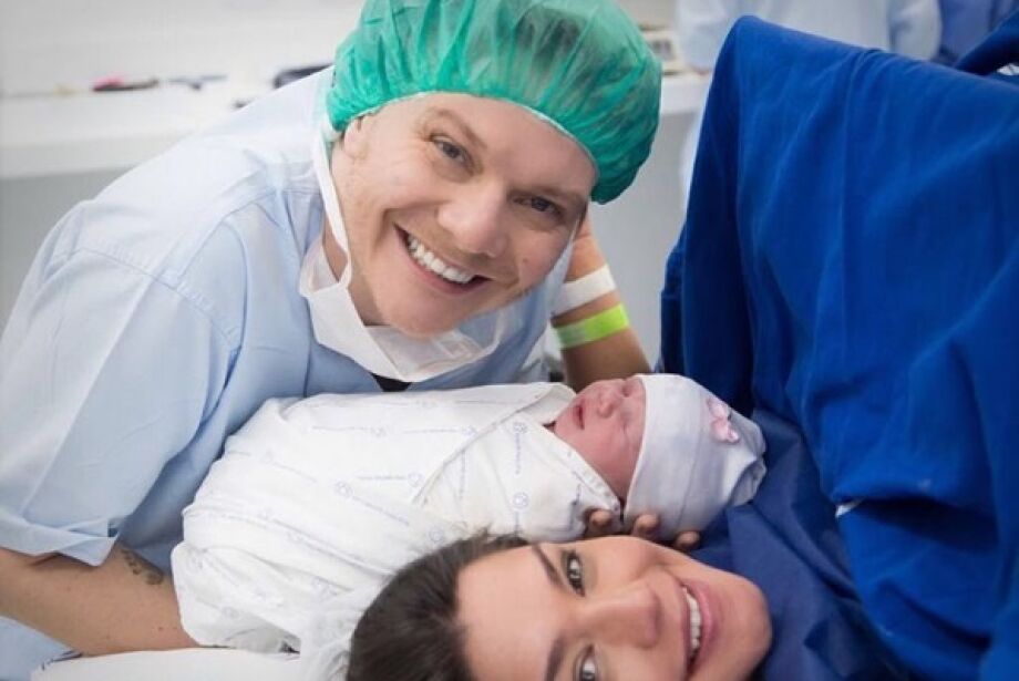 "Amor, alegria e gratidão transbordando. Um sentimento único que só aumenta no coração! Ontem, dia 01/08/2016 as 05:20h da manhã, nasceu nossa Melinda! Perfeita e saudável, abençoada por Deus, com 3.045 kg e 49,5 cm ela veio ao mundo cercada de muito amor! Nos sentimos ainda mais abençoados por ter a oportunidade de viver uma emoção como essa. Do nosso amor, veio a nossa misturinha... Obrigada a todos pelo carinho e orações! Que Deus abençoe e proteja sempre a nossa família! Não temos palavras pra descrever o que sentimos. Foi mágico, é mágico! Dia mais especial das nossas vidas!", foi escrito por ambos, na legenda de algumas das fotos tiradas, pela profissional Thalita Castanha, do exato momento do parto.