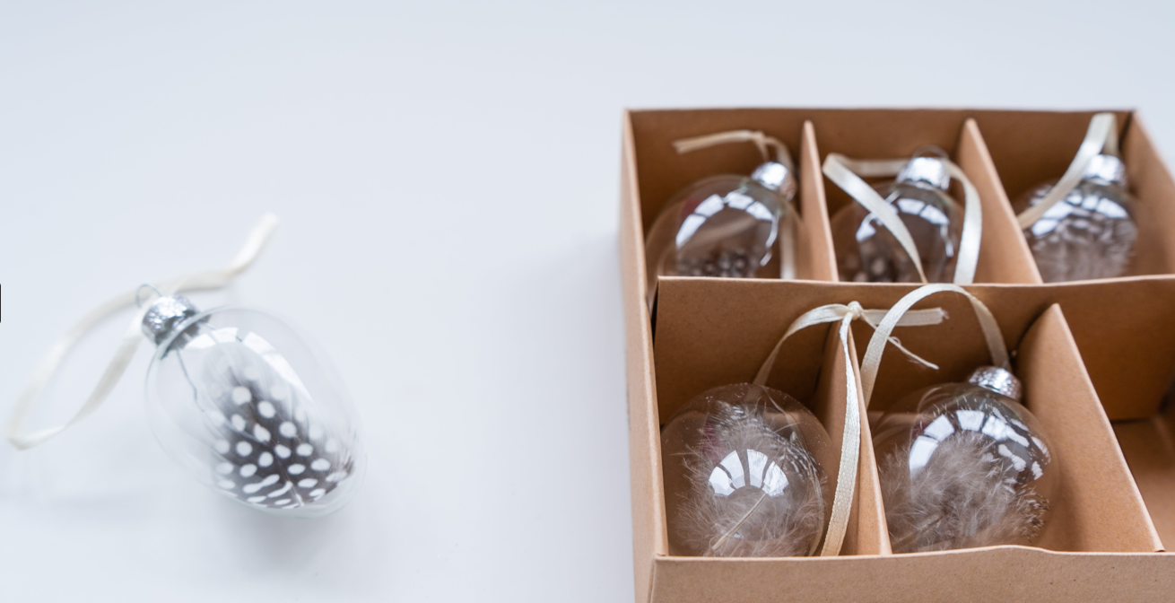 A árvore de Natal precisa ser desmontada para reduzir o volume; as luzes enroladas em um pedaço de papelão como base e a guirlanda, por sua delicadeza, merece sua própria caixa e sem nada por cima.