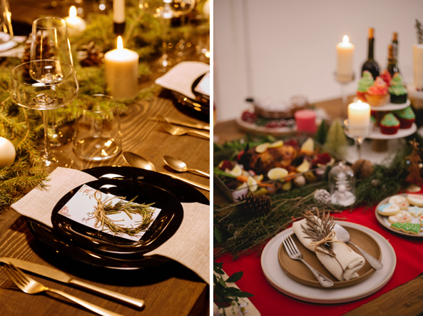 *Natal: Uma composição de louças bem escolhida faz a diferença. A tônica da festa permite tonalidades mais quentes e coloridas, acrescidas de arranjos naturais feitos com galhos, pinhas e folhas verdes.