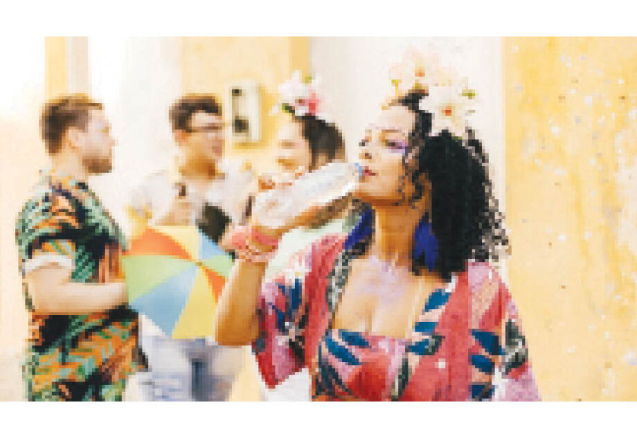 A hidratação é crucial durante os dias de festa, principalmente em função das altas temperaturas previstas para o período. “É ideal já manter uma boa hidratação pré-folia. Mas também é crucial repor a água perdida durante o evento. A dica é levar uma garrafa que não atrapalhe a diversão, caso esteja em blocos de rua”, sugere Ana Carolina. As opções recomendadas são água, isotônicos, água de coco, sucos naturais e chás.