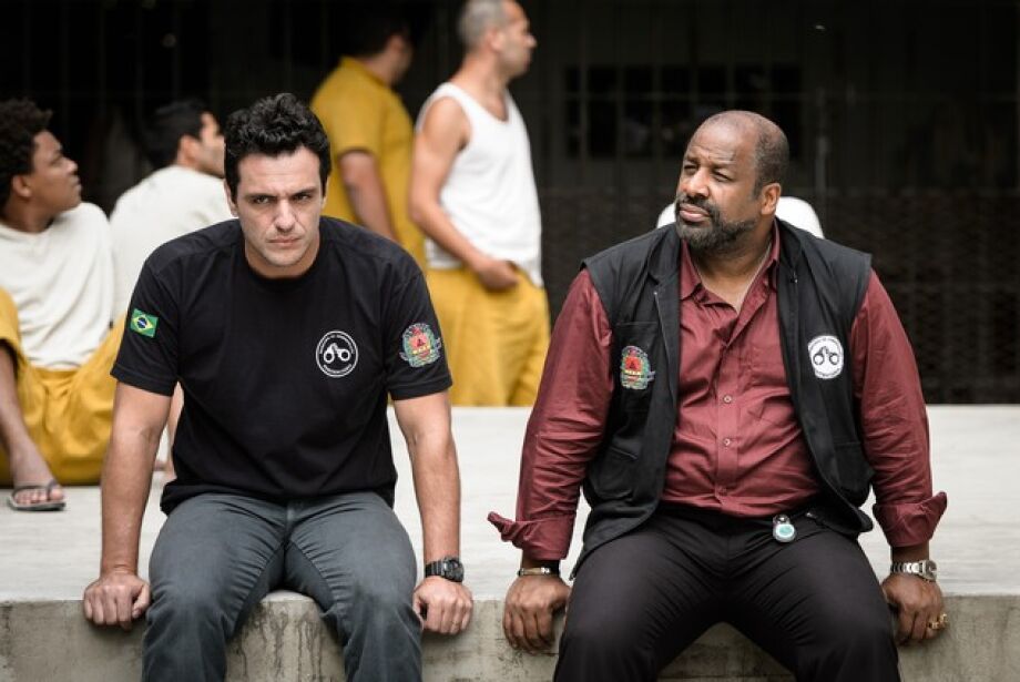 “Carcereiros” retrata o universo de agentes penitenciários no Brasil, com o personagem do Rodrigo Lombardi vivendo as dificuldades do encarceramento. Dele e dos presidiários.
