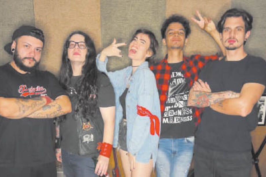 “Surgimos no início de 2023 e estamos fazendo um som com referências nossas, mas já desenvolvendo músicas autorais”, diz a vocalista. Dan (guitarra, 18 anos), Felipe Kirsten (violão, percussão e vocal, 19), Curumin (baixo, 25) e Isaac (bateria, 19) são os outros integrantes do promissor combo musical.