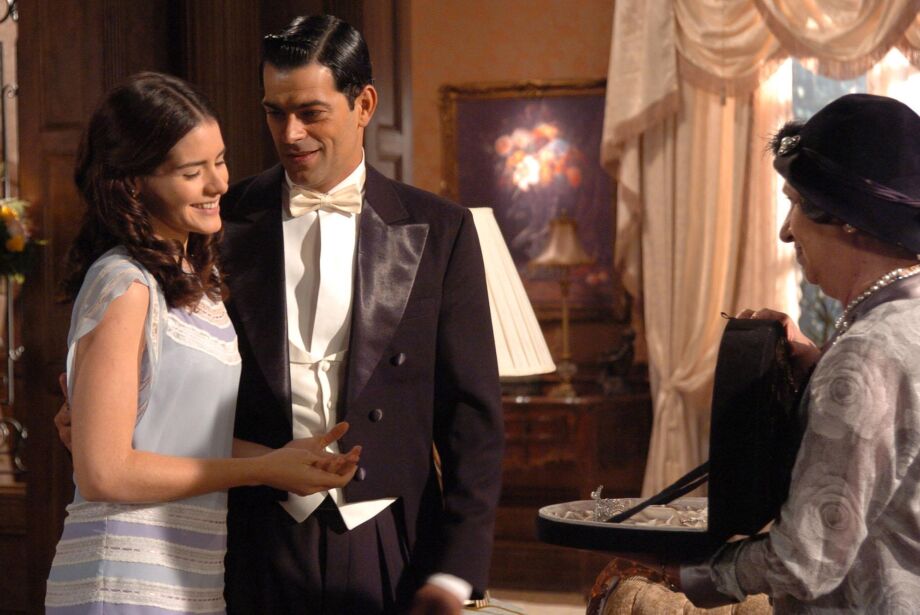 Folhetim dos mais tradicionais, “Alma Gêmea” aborda uma história de amor que resiste a tempo, tragédias e diferenças sociais. Ambientada nos anos 1920, a primeira fase da trama mostra o amor à primeira vista do botânico Rafael e da bailarina Luna, de Eduardo Moscovis e Liliana Castro. Em pouco tempo, eles se casam e têm seu primeiro filho. No entanto, tanta felicidade desperta o ódio e a inveja da ambiciosa Cristina, prima de Luna, interpretada por Flávia Alessandra. Além de querer o marido da prima, Cristina também deseja as joias da família, que foram presenteadas à Luna. Disposta a tomar a vida da bailarina, a malvada arma um plano que culmina com a morte da mocinha e o sumiço das joias, tudo com o apoio de sua mãe, a ardilosa Débora, de Ana Lúcia Torre. “As duas vivem de altos e baixos. Cristina sempre foi rejeitada por todos e faz de tudo para ter a vida que acha que merece. Essa obstinação de ser rica, amada e respeitada me rendeu ótimas cenas. Era uma vilã passional e focada”, analisa Flávia Alessandra.