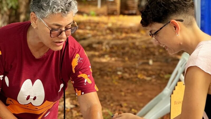 A professora responsável por incentivar ele e os demais alunos da escola é Jane Laura. Com mais de 20 anos em sala de aula, lecionando Redação, Língua Portuguesa e Literatura, Jane não tem preguiça e arregaça as mangas e inscreve os estudantes em todos os concursos que aparecerem.