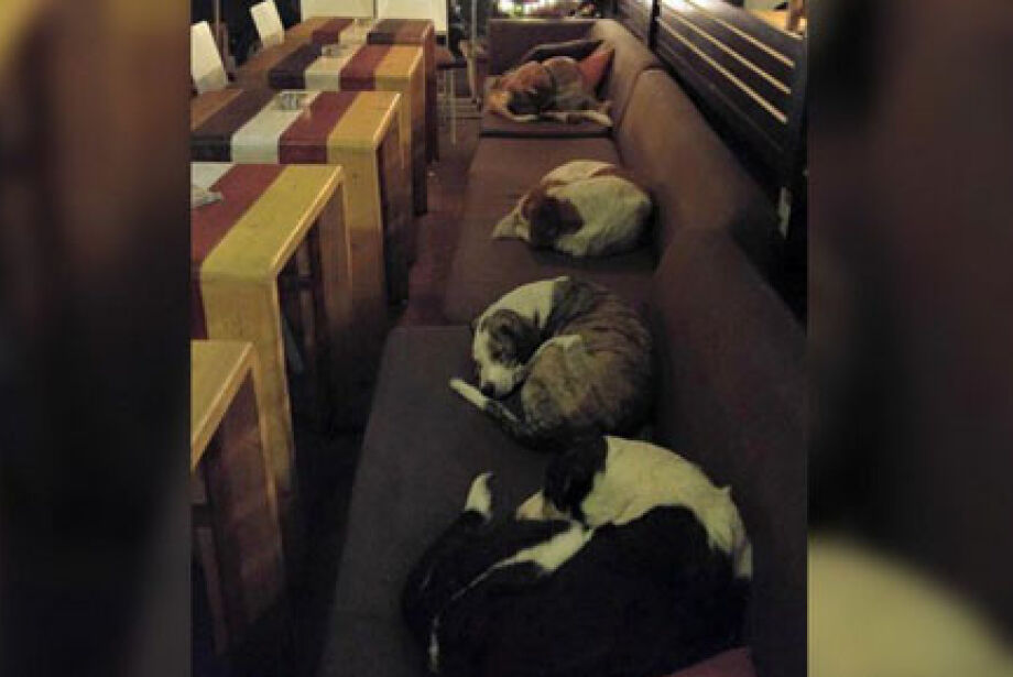 “Na cidade há muitos cães”, disse ao blog do local, i100. “Quando o bar fecha, os cães vem dormir aqui. Nós não temos um problema. Desde julho, todas as noites há um cão no sofá.