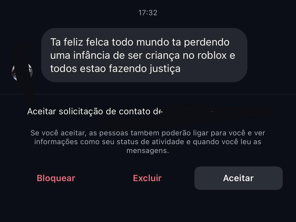 A princípio, a revolta era direcionada à própria plataforma do Roblox, mas nos últimos dias algumas crianças passaram a atacar o influenciador Felca por acreditarem que ele teria envolvimento direto com o bloqueio do chat.