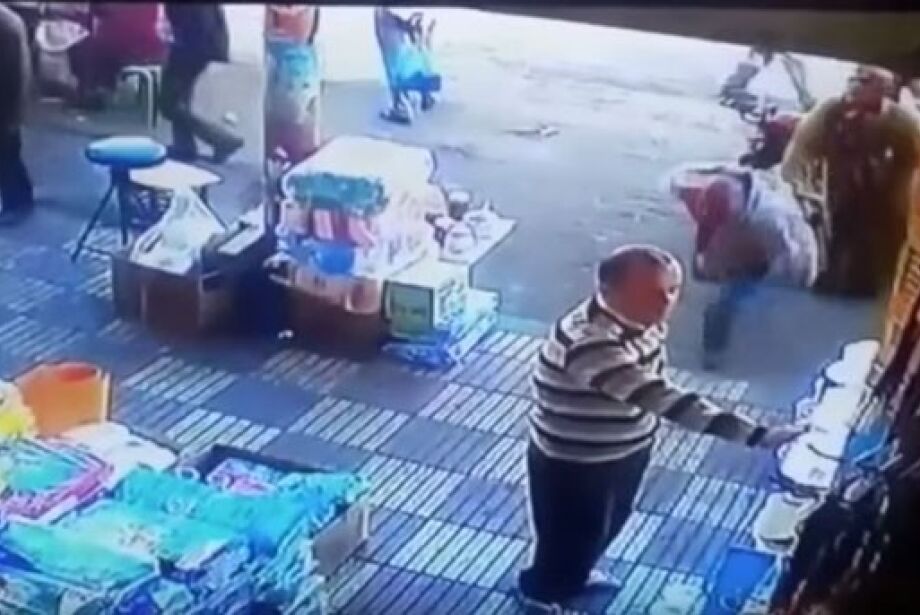 Uma câmera de segurança instalada em Inezgane, no Marrocos, flagrou o momento em que uma mulher derrubou um homem com um soco após ele assediá-la na rua.