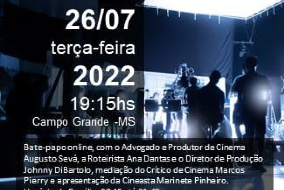 As conversas contarão com o advogado e Produtor de Cinema Augusto Sevá, a Roteirista Ana Dantas e o Diretor de Produção Johnny DiBartolo.
