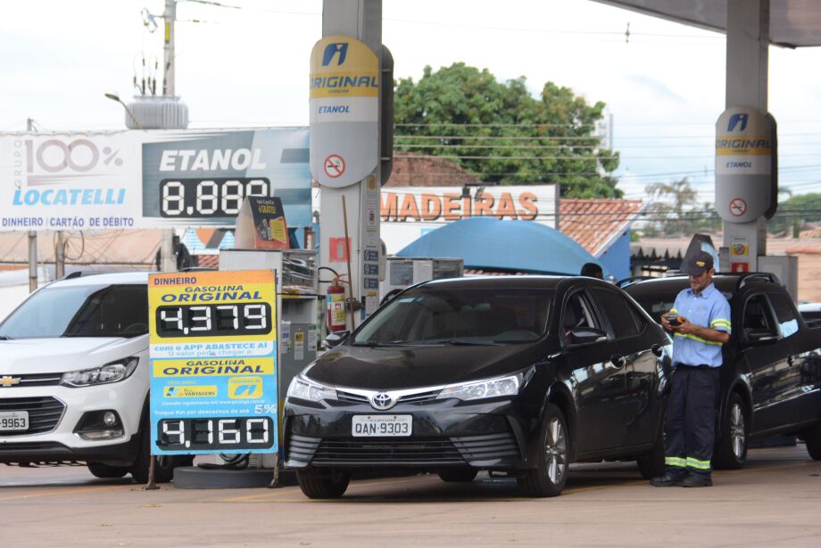Levantamento aponta variação de mais de 10% no preço da gasolina entre os estabelecimentos de Campo Grande. O litro do combustível é vendido a R$ 4,729 para pagamento à vista no dinheiro e chega a R$ 4,879 quando o pagamento é no cartão de crédito. Já o litro da versão aditivada da gasolina chega a R$ 4,929 tanto no pagamento em dinheiro quanto no cartão.