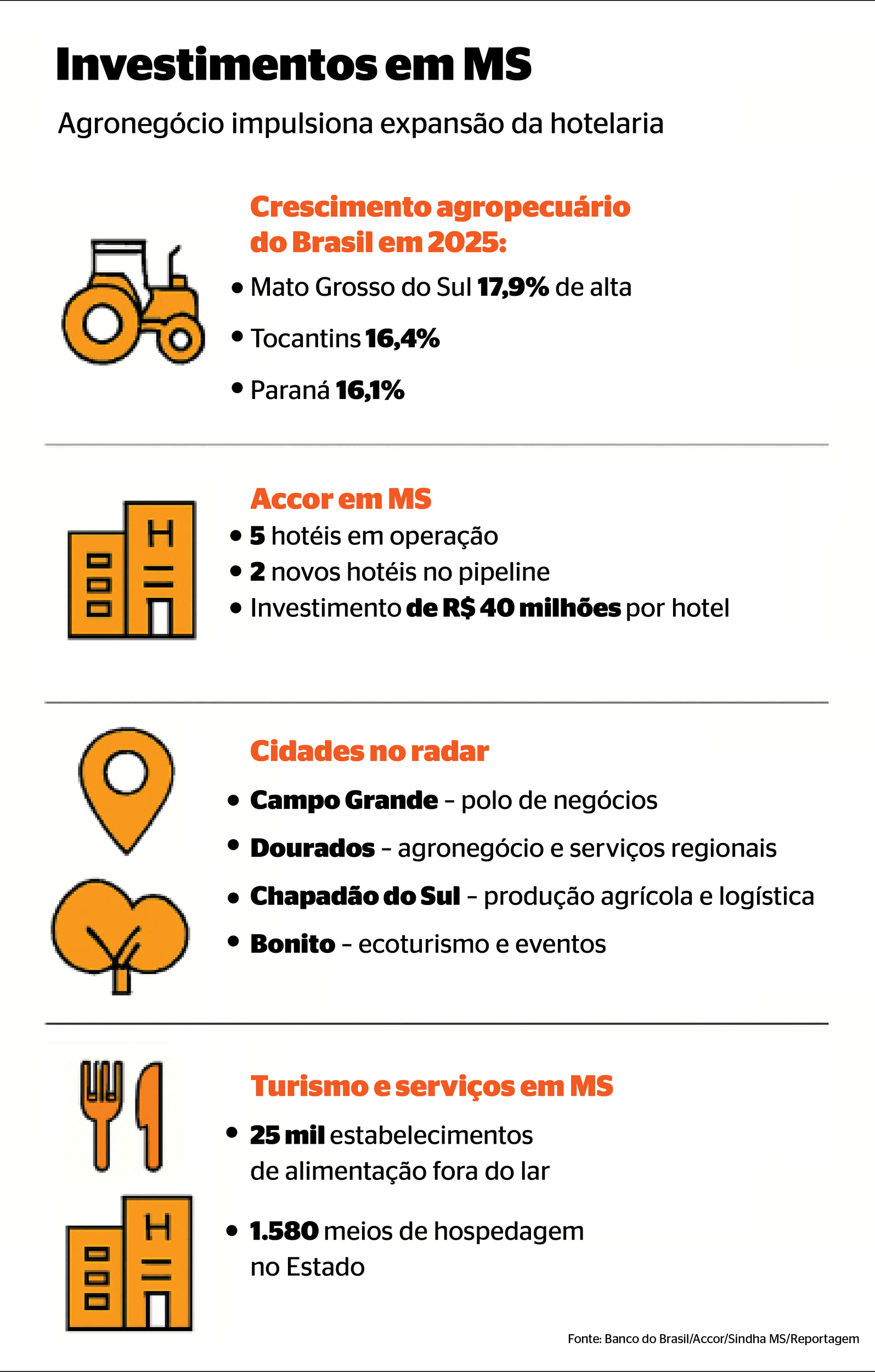 Impulsionado pelo avanço do agronegócio e pela interiorização dos investimentos, Mato Grosso do Sul voltou a entrar no radar de grandes redes hoteleiras. A mais recente sinalização veio da Accor, que anunciou a ampliação de sua presença no Estado com novos empreendimentos voltados, sobretudo, ao turismo de negócios atrelado à dinâmica do campo.
