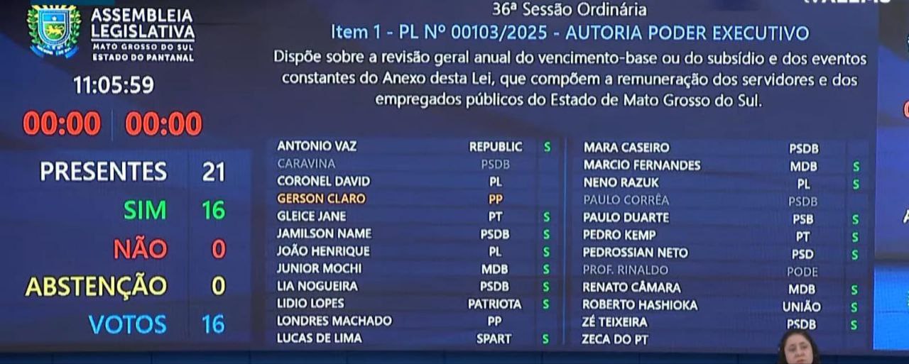 Os deputados estaduais de Mato Grosso do Sul aprovaram, na sessão desta quinta-feira (8), o reajuste salarial de 5,06% para os servidores públicos estaduais do Estado. A aprovação foi em primeira votação e ainda passará por uma segunda antes de ir à sanção do governador.