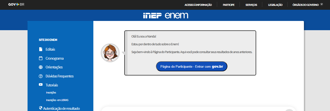 Página do ENEM para conferir o resultadoAs inscrições do Sisu ocorrem de 19 a 23 de janeiro e devem ser feitas neste site. O candidato poderá se inscrever em até duas opções de curso, podendo alterá-los durante o período de inscrição.